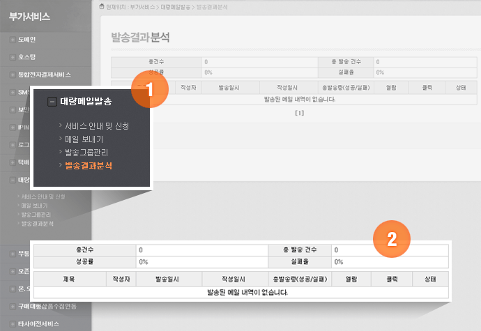 메뉴위치 : 관리자모드 > 부가서비스 > 대량메일발송 >
