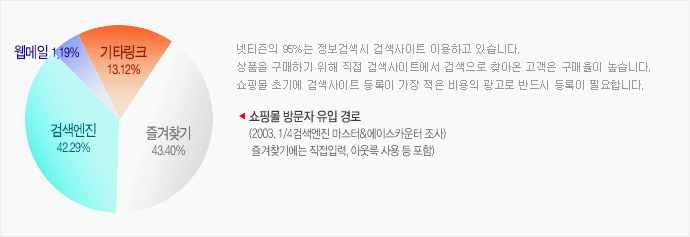 이외에 군소 검색사이트들도 키워드시장을 겨냥하여 공격적인 마케팅을 하고 있습니다. 검색사이트 등록 전에 각각의 검색사이트에서 키워드 검색시 등록된 사이트수 및 등록방식 등을 고려해야 합니다. 겟몰은 온오프코리아와 제휴하여 검색사이트 일괄등록 및 할인행사를 진행하고 있습니다. |