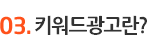 특정한 단어(키워드)를 구매하여 해당 키워드 검색시 첫페이지의 상단에 출력시켜주는 방식으로 키워드의 검색량에 따라 월별 가격이 정해집니다.(키워드에 따라 월 20만원에서100만원이상 하는 경우도 있습니다.)