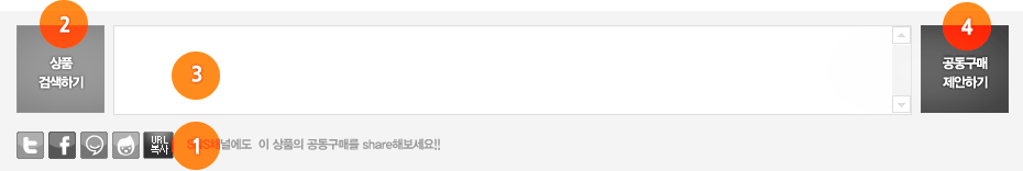 - 각 SNS채널에 공유될 문구를 아래 참고그림 3번영역에 입력 후 공동구매 제안을 완료하세요!