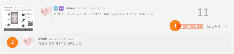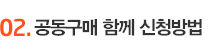 - 공구를 제안한 상품 중 나도 동일한 상품에 대해 공구를 희망한다면 아래 참고그림 1번의 함께 신청하기 버튼을 클릭