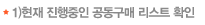 공동구매 > 진행중인 공동구매 탭에서 진행중인 공동구매가 보여지며 상품상세보기 버튼을 클릭하면 상품에 대한 상세 설명을 확인 하실 수 있습니다.
