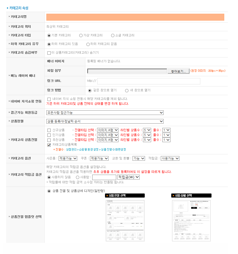 카테고리 등록화면