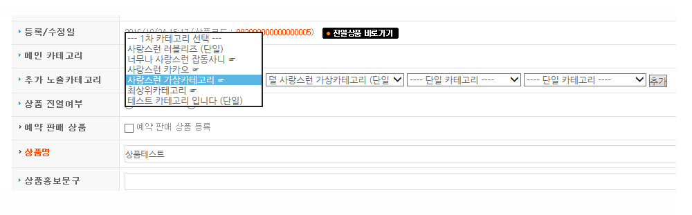 추가 노출카테고리 설정 관리모드에서 보기