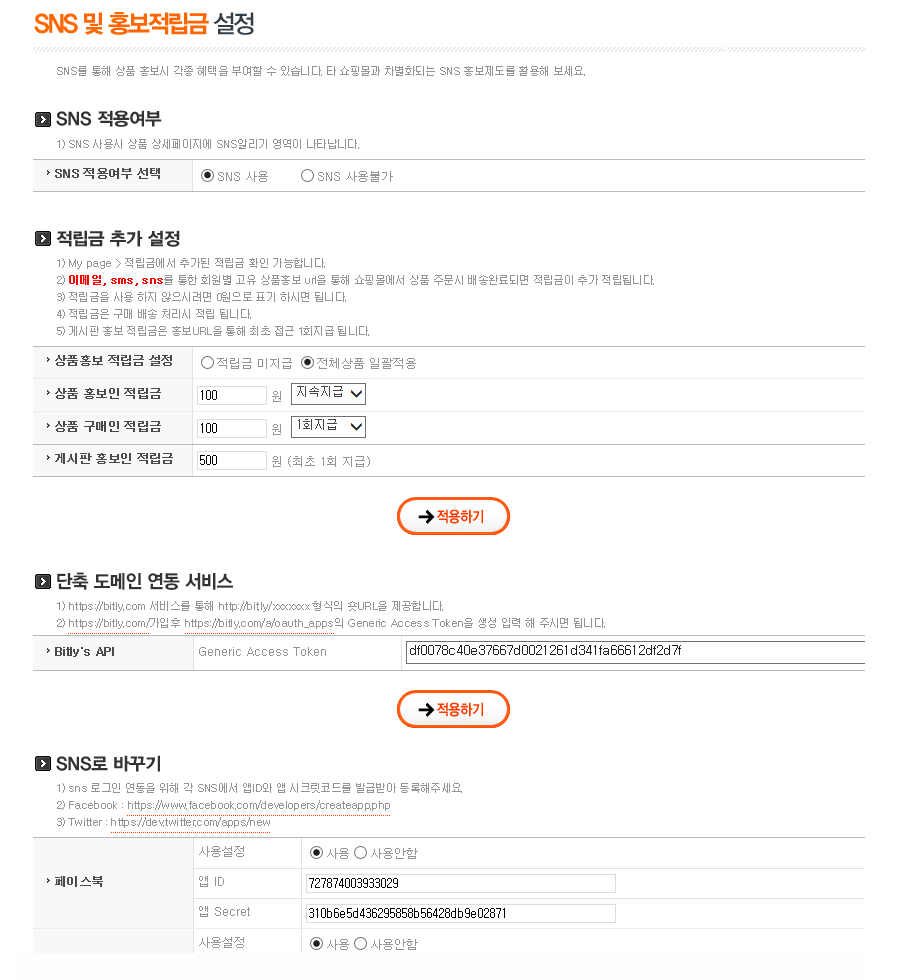 SNS 및 홍보적립금관리 관리모드에서 보기 >