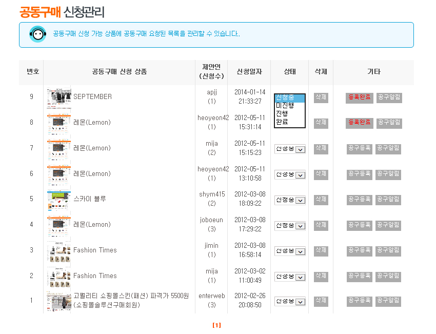 소셜쇼핑 신청 관리모드에서 보기 >
