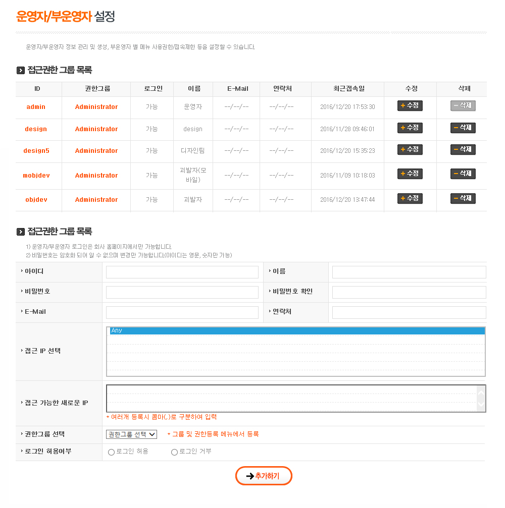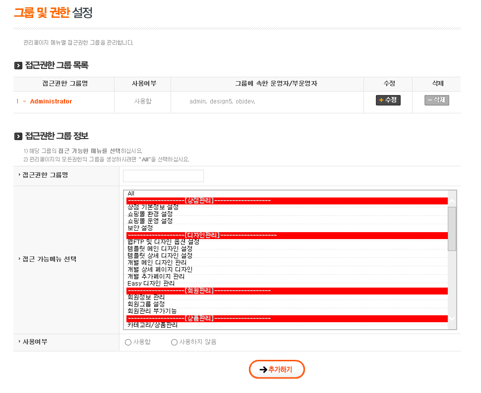관리그룹 및 권한 설정 관리모드에서 보기 >