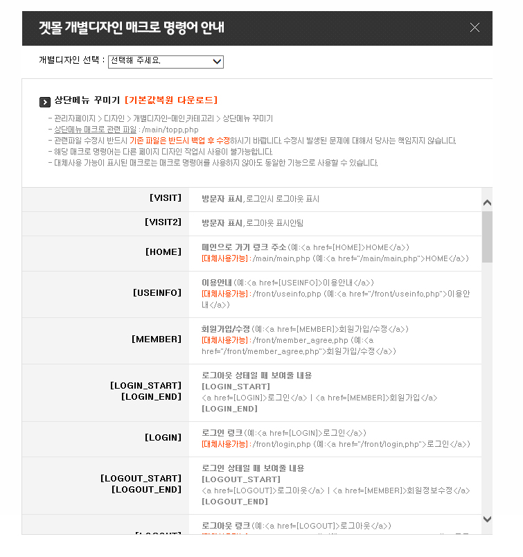 개별디자인 매크로 명령어 관리모드에서 보기 >