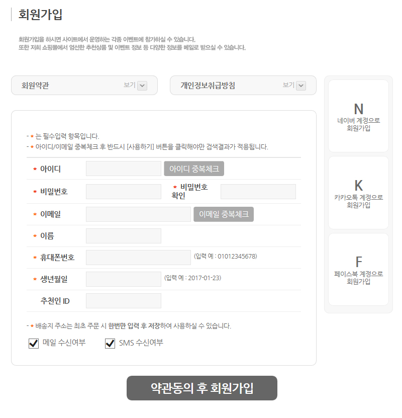2. SNS연동과 동시에 간편 회원가입도 가능