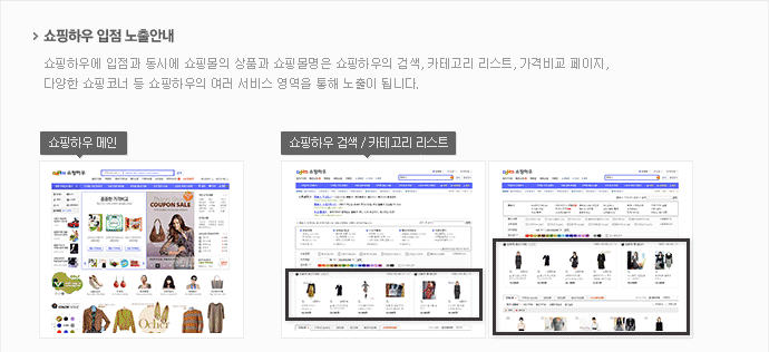 노출이 가장 많은 광고상품 쇼핑몰 유입율 및 몰브랜딩 효과 우수 |