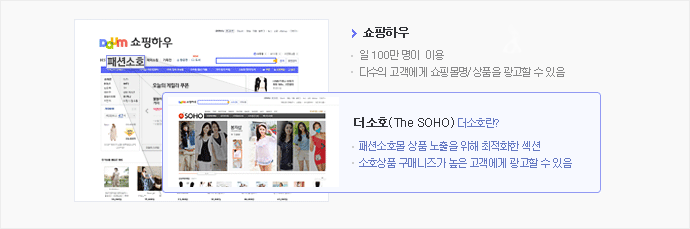 저렴한 비용으로 메인페이지에 소호몰 홍보 '상품판매+몰브랜딩'효과 |