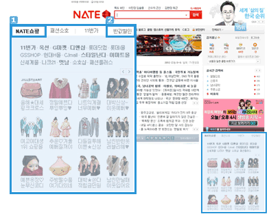 네이트 메인 쇼핑박스 ‘NATE쇼핑’ 탭 |