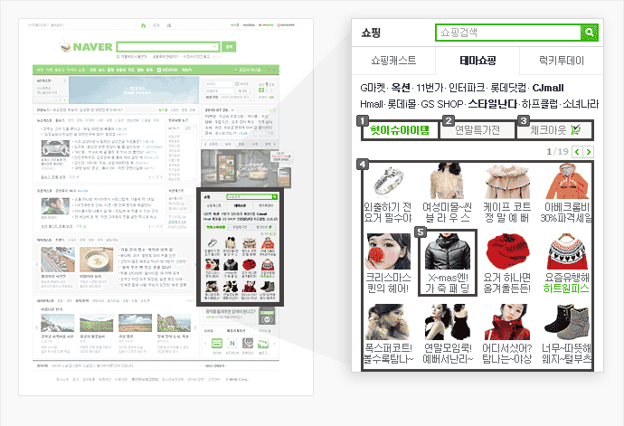 네이버 메인 쇼핑박스 영역 “테마쇼핑탭”에 노출됩니다.(구매시 무조건)
