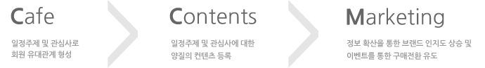 1. 카페 플랫홈을 통해 회원들간의 유대관계를 형성 및 구매전환 유도