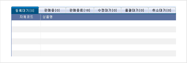 | 등록대기에서 판매를 시작하면 판매 중인 것만 모여 보여줍니다. 만일 판매종료라고 체크하면 오픈마켓 상품정보 갱신 시 판매 중지가 됩니다. |