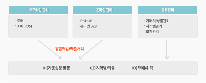 - ERP 시스템을 이용한 온라인 B2B/B2C 통합 - 통합 물류/재고 관리 - CRM - SCM |
