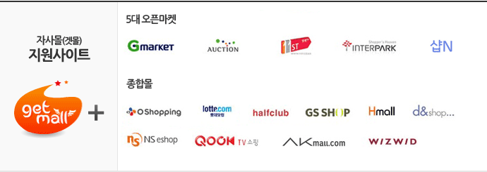 오픈마켓, getmall 상품 판매 관리 4개 오픈마켓과 getmall 자체몰, CJ오쇼핑, 디앤샵, 하프클럽, 롯데닷컴에 상품을 자동등록하고, 실시간으로 진열상태를 관리하면서 재고를 반영합니다. 마켓별 고객문의사항을 수집하여 실시간으로 답변합니다. |