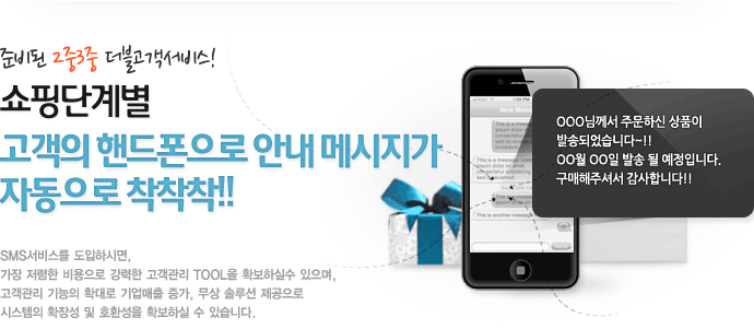 장문문자전송(LMS기능 지원) - 개별장문문자전송이나 상품권선물 및 인증번호전송 시 유용하게 활용 |