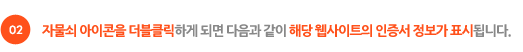 웹사이트에 인증마크를 표시할 모든 페이지 다음과 같이 인증마크 링크를 삽입해 주십시오. |
