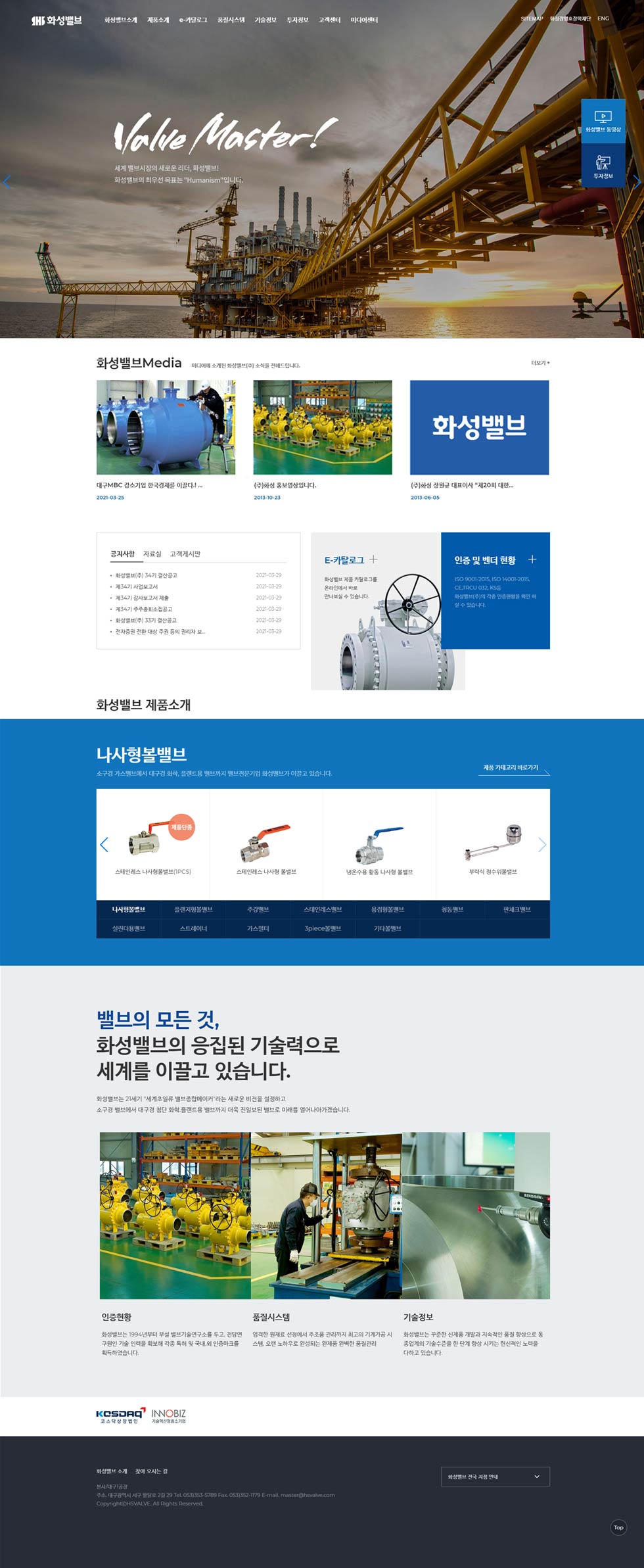 세계 밸브시장의 새로운 리더, 화성밸브의 두번째 리뉴얼(국문,영문) 화성밸브사용자, 관리자 편의성을 높이기 위한 UI수정 및 추가작업, 화성밸브의 아이텐티티 확립을 위한 이미지 및 내용 추가, 교체 작업이 진행되었습니다.