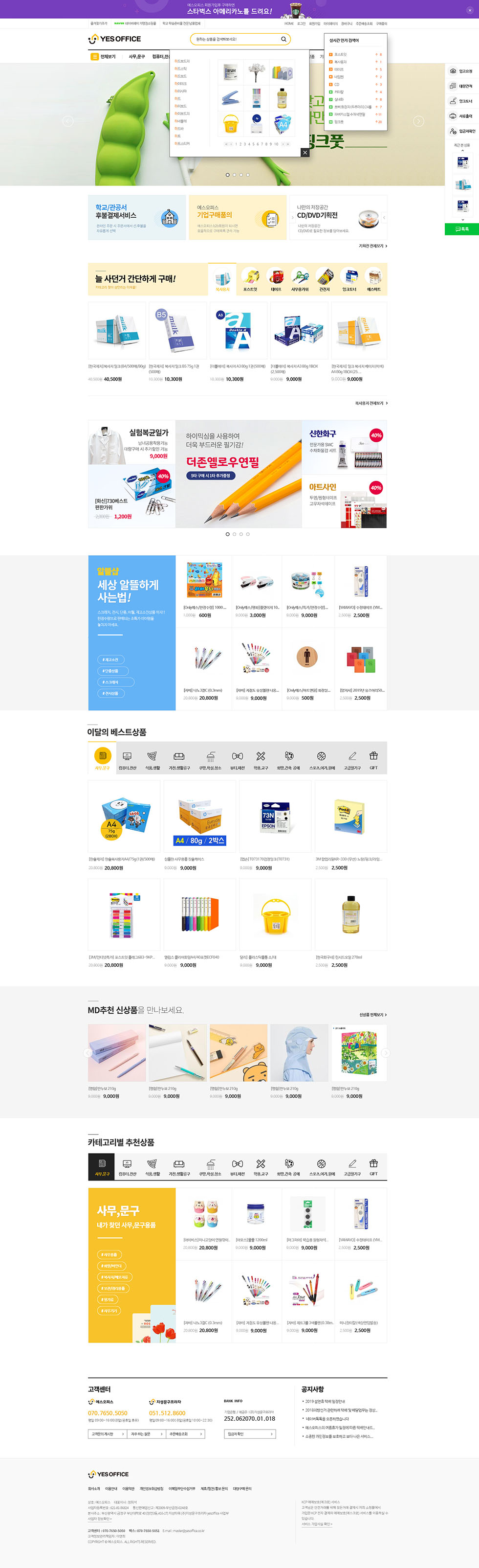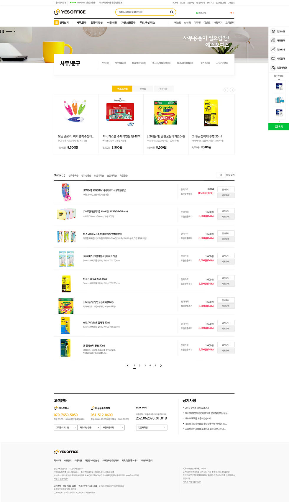 문구,팬시 및 화구, 사무용품, 생활용품 등 다양한 학교 학습준비물 전문 쇼핑몰 예스오피스