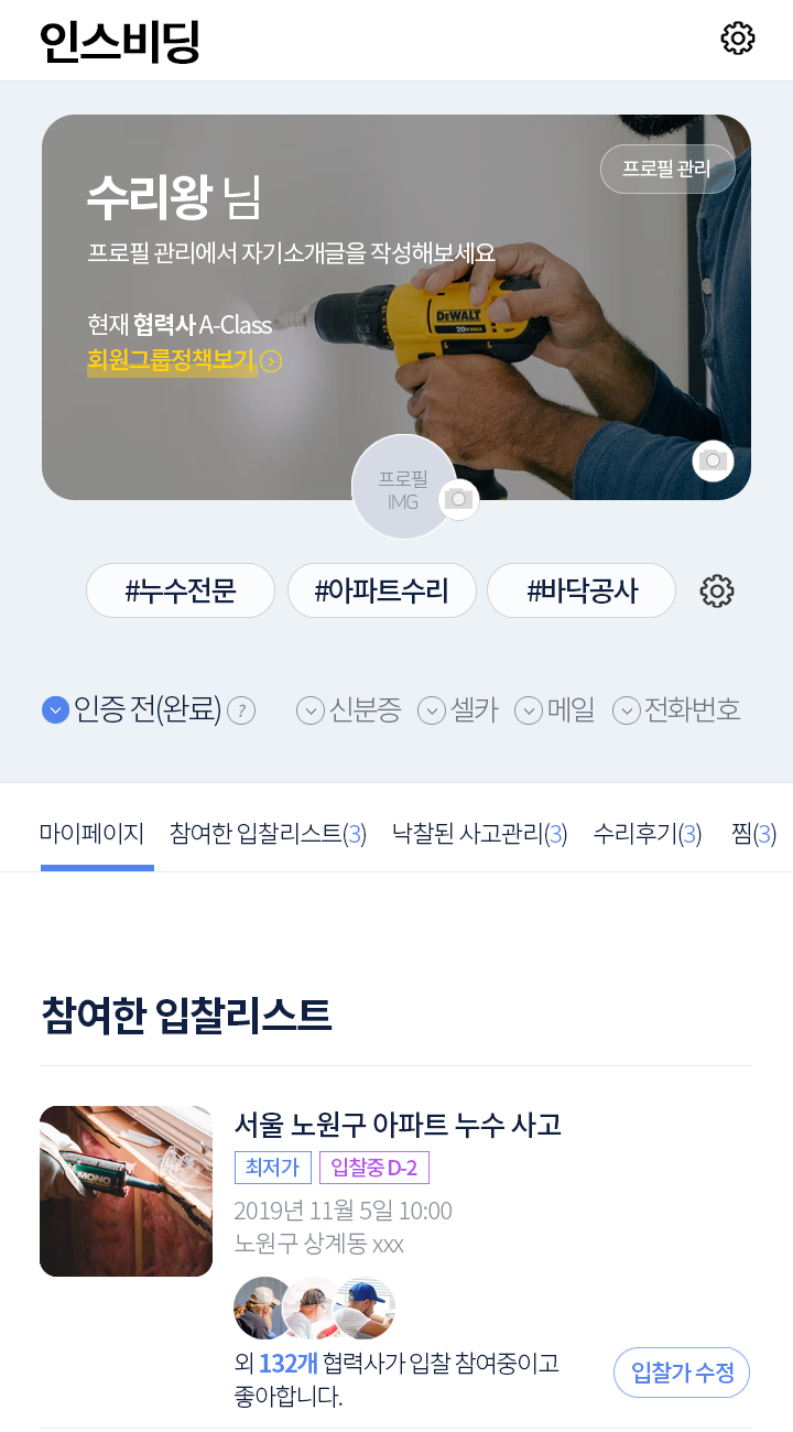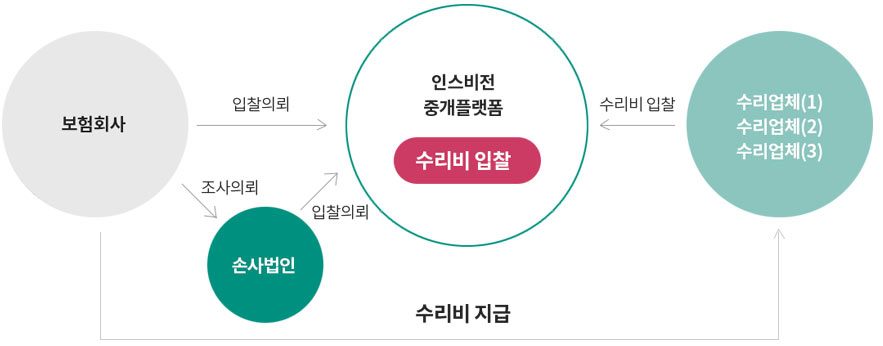 인스비전의 생활보험 수리입찰플랫폼은 기존의 보험사, 손해사정법인, 수리업체가 가지고 있었던 문제점을 파악하고,