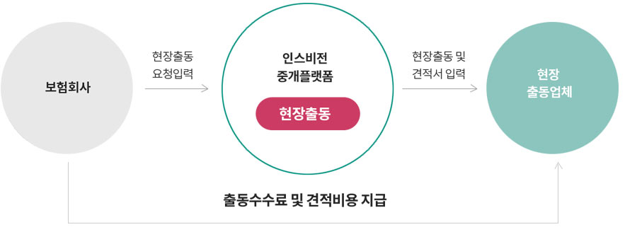 • 담당자가 인스비전 시스템에 긴급출동 요청 시 당사와 계약된 출동업체에 자동(랜덤) 배정