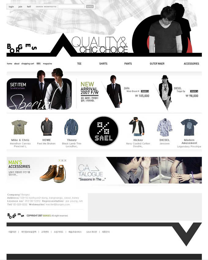 특이사항남성의류 쇼핑몰을 타겟으로 이루어진 디자인이지만 독특한 레이아웃과 깔끔한 컬러 선택으로 어떤 상품과도 잘 어울릴 잇 스킨