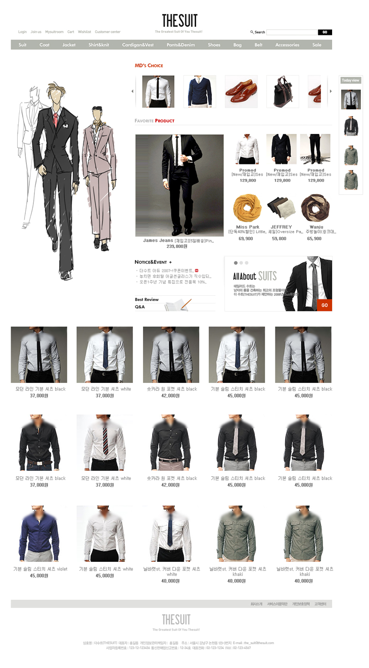 특이사항깔끔하고 군더더기없는 디자인으로 수트 혹은 오피스룩 위주의 남성의류 패션몰에 추천