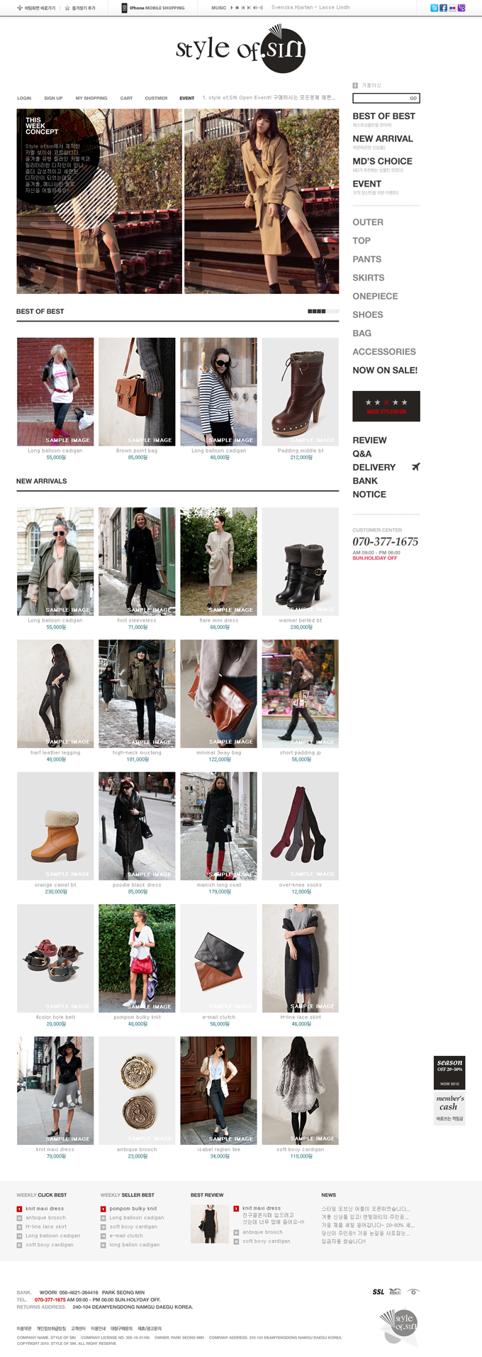 특이사항시원스러운 카테고리와 메인 롤링배너로 한눈에 들어오는 깔끔한 쇼핑몰을 원한다면 Style of. Sin 추천
