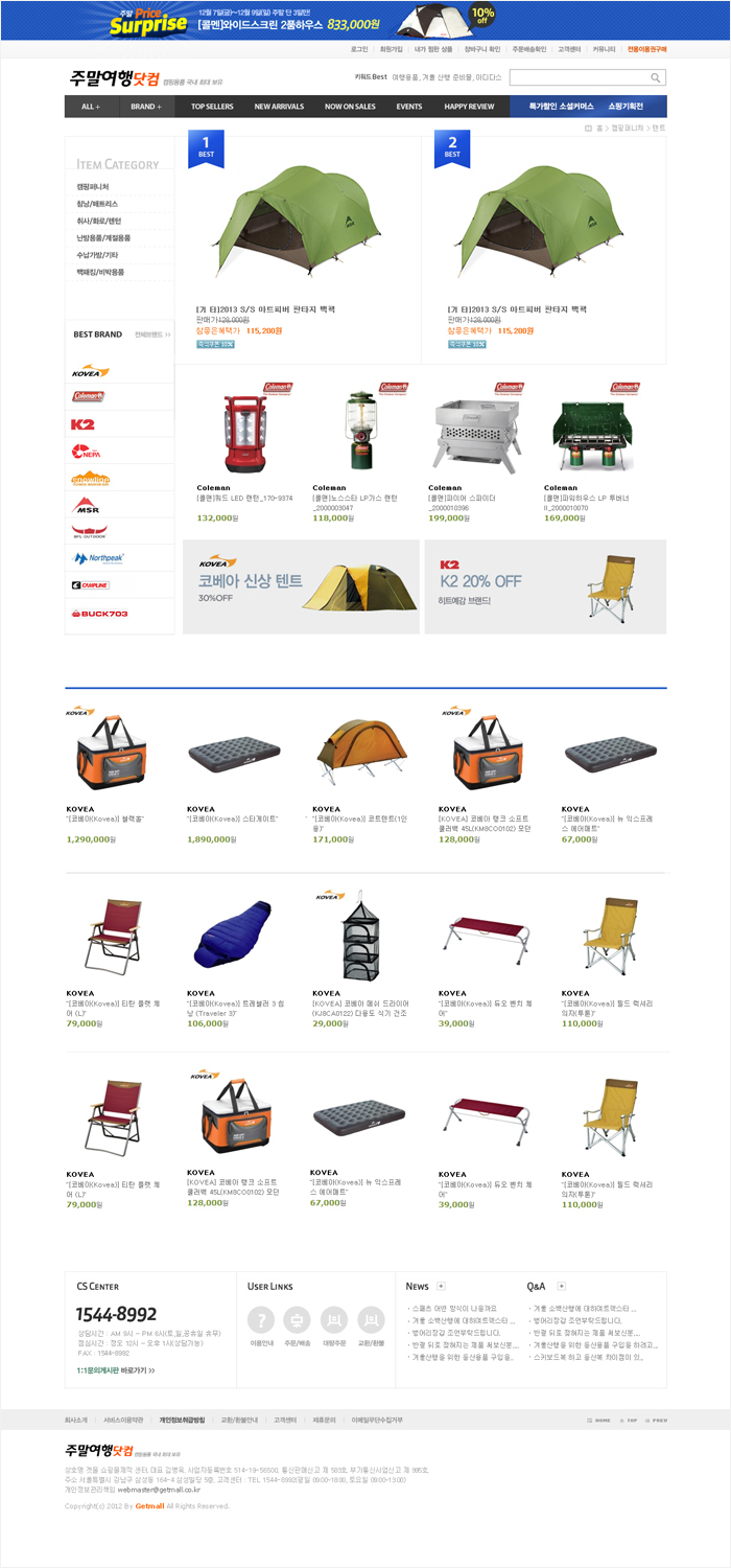 캠핑.아웃도어/여행 쇼핑몰01(서비스/여행)