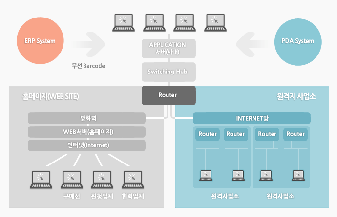 사용자 환경 - 사내(Local) 혹은 인터넷을 통한 원격지 본사, 매장 및 창고 에서 동시 사용 가능