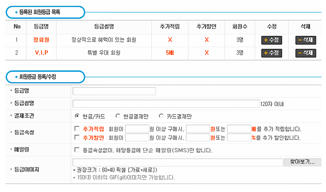 회원 등급 무제한 설정 / 등급별 차등 정책 기능