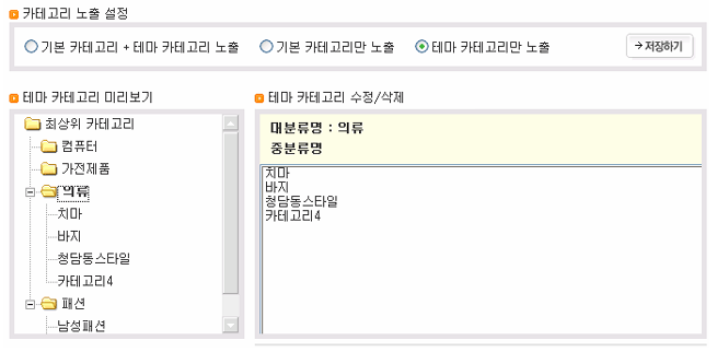 - 미니샵의 카테고리를 본사의 기본 카테고리와 명칭이 다른 카테고리로 표시할 때 사용