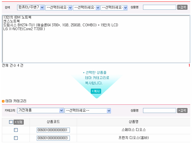 - 기본 카테고리와 테마카테고리 선택노출 기능