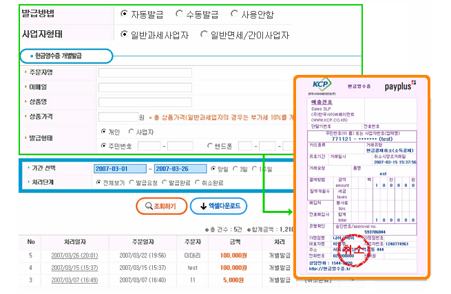 - 자동발급/수동발급 : 기능고객이 직접 주문리스트에서 신청하면 자동/수동 발급을 처리함