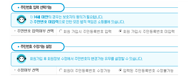 이슈가 되고 있는 주민번호 입력 선택기능 주민번호 수정 선택 기능