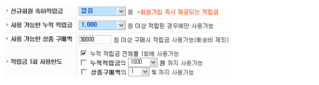 - 적립금 사용조건 설정