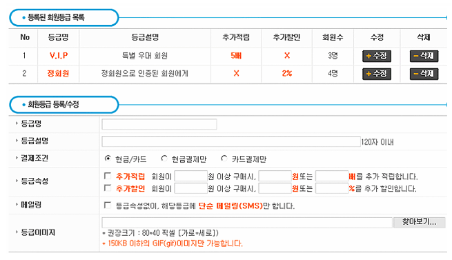 급별 추가적립/추가할인 제공 기능-회원등급 무제한 등록
